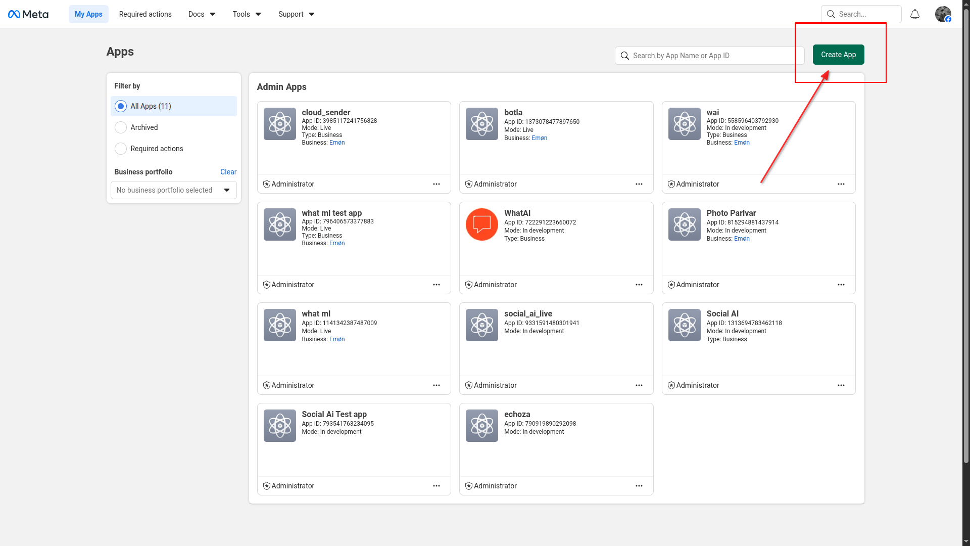 Login on developers.facebook.com (opens in a new tab) and click Create App