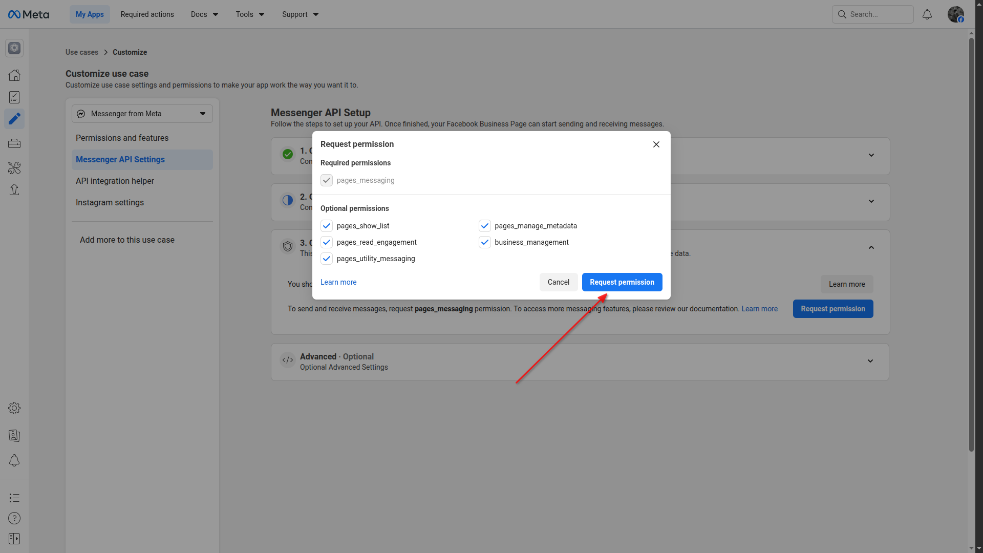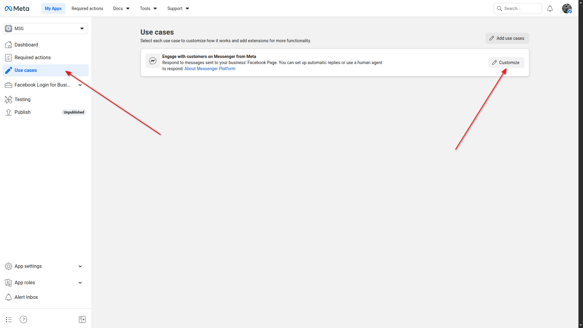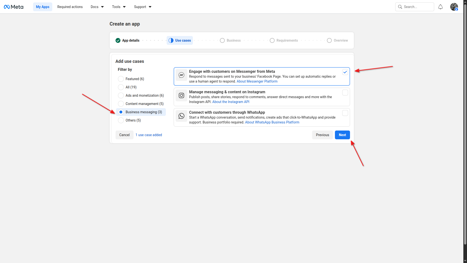 Select "Engage with customers on Messenger from Meta" as use case
