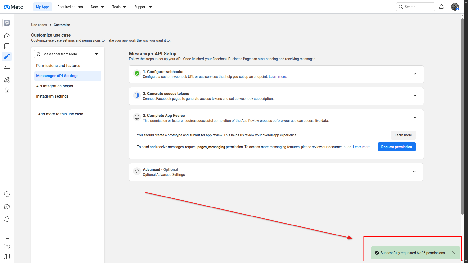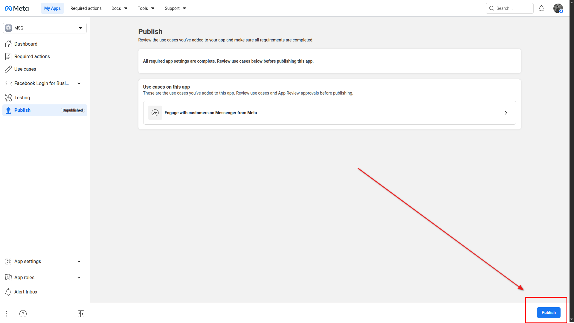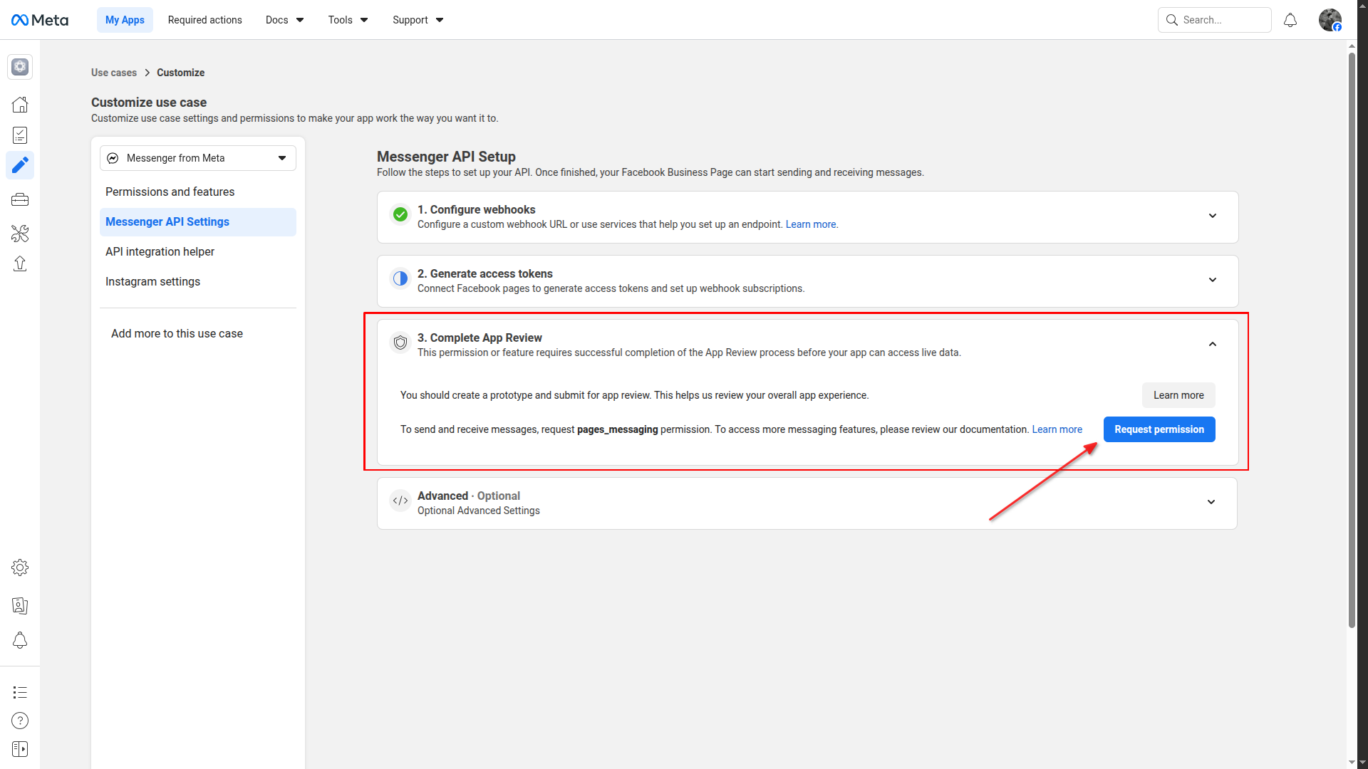 Select "Engage with customers on Messenger from Meta" as use case