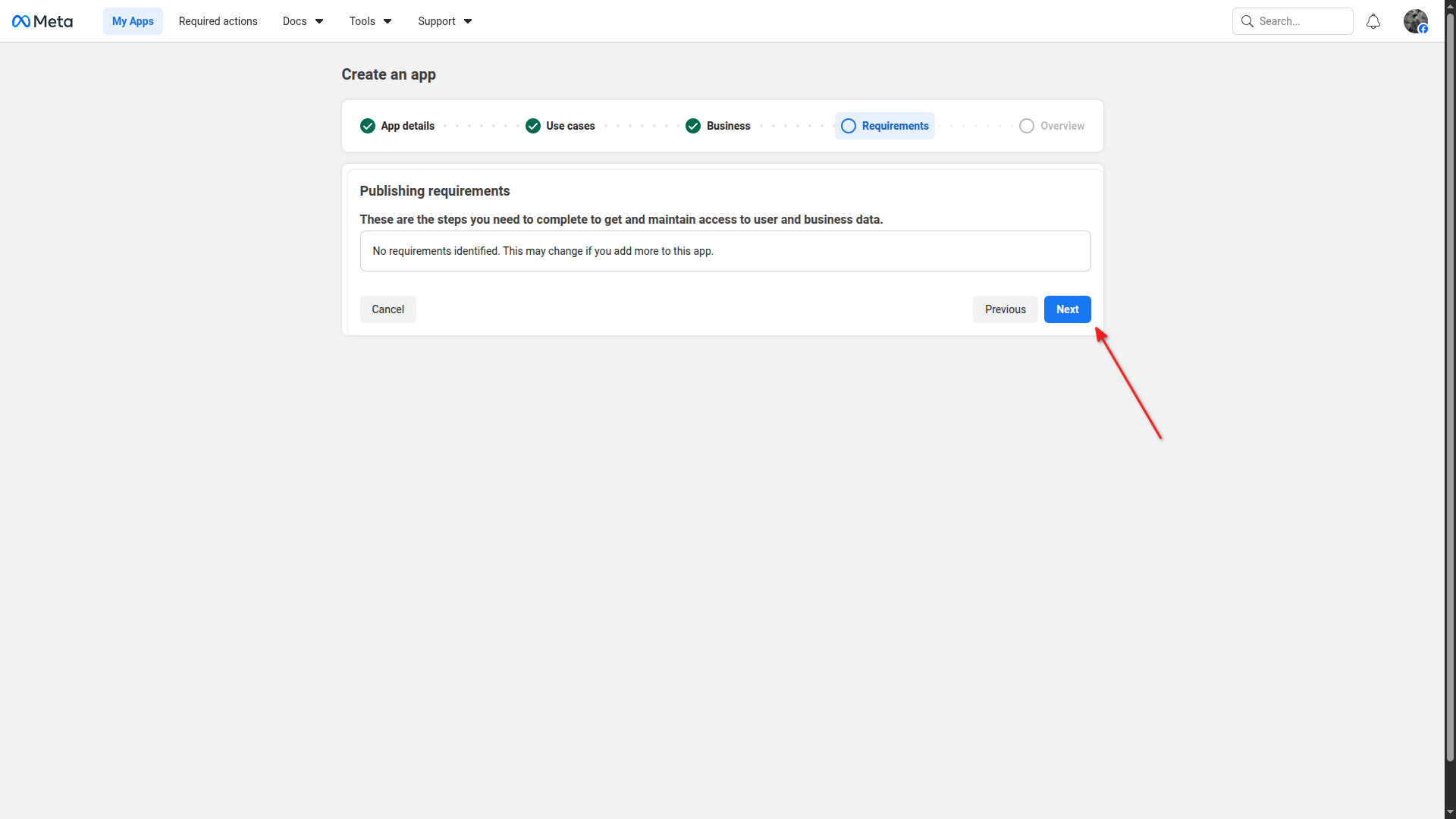 Complete the requirements step