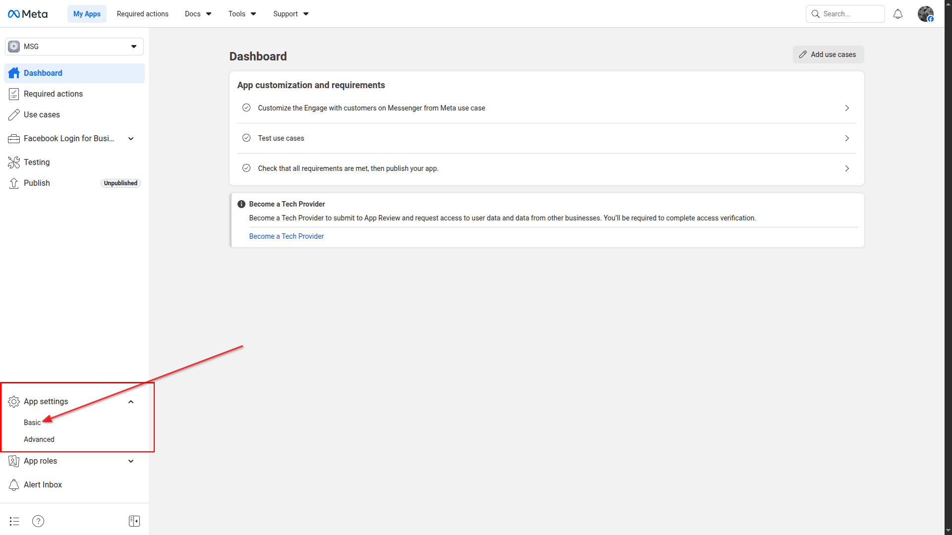 Go to App Settings > Basic