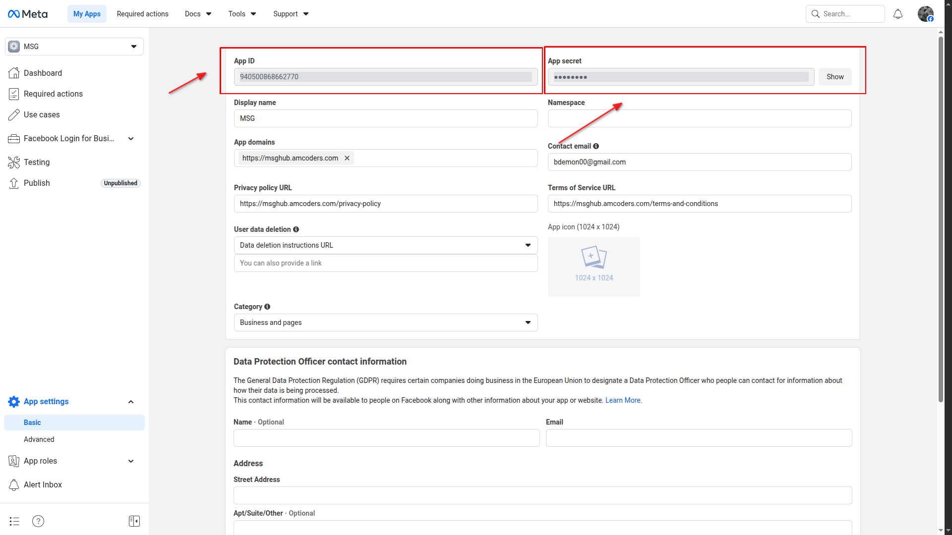 Keep your App Secret confidential. Do not share it publicly or include it in client-side code.