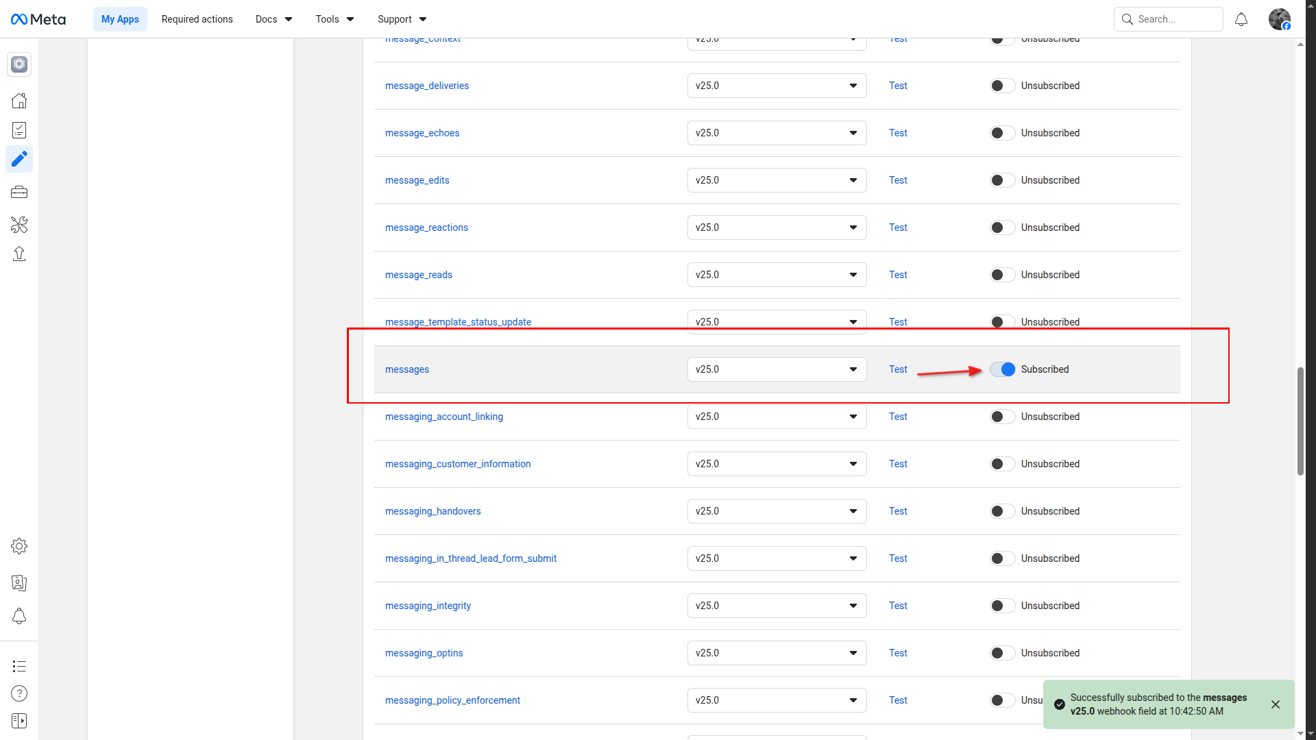 Subscribe to "messages" webhook event
