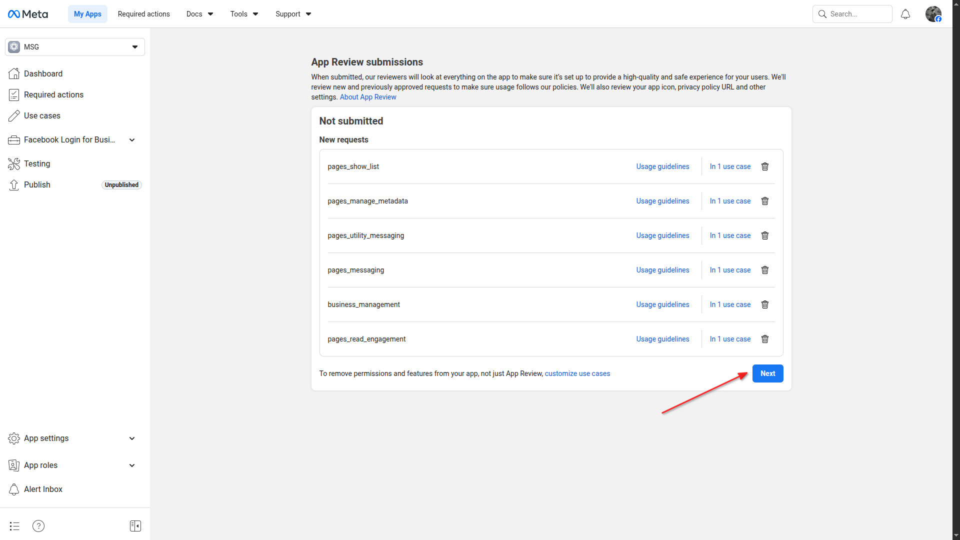 Go to App Review submissions and click Next