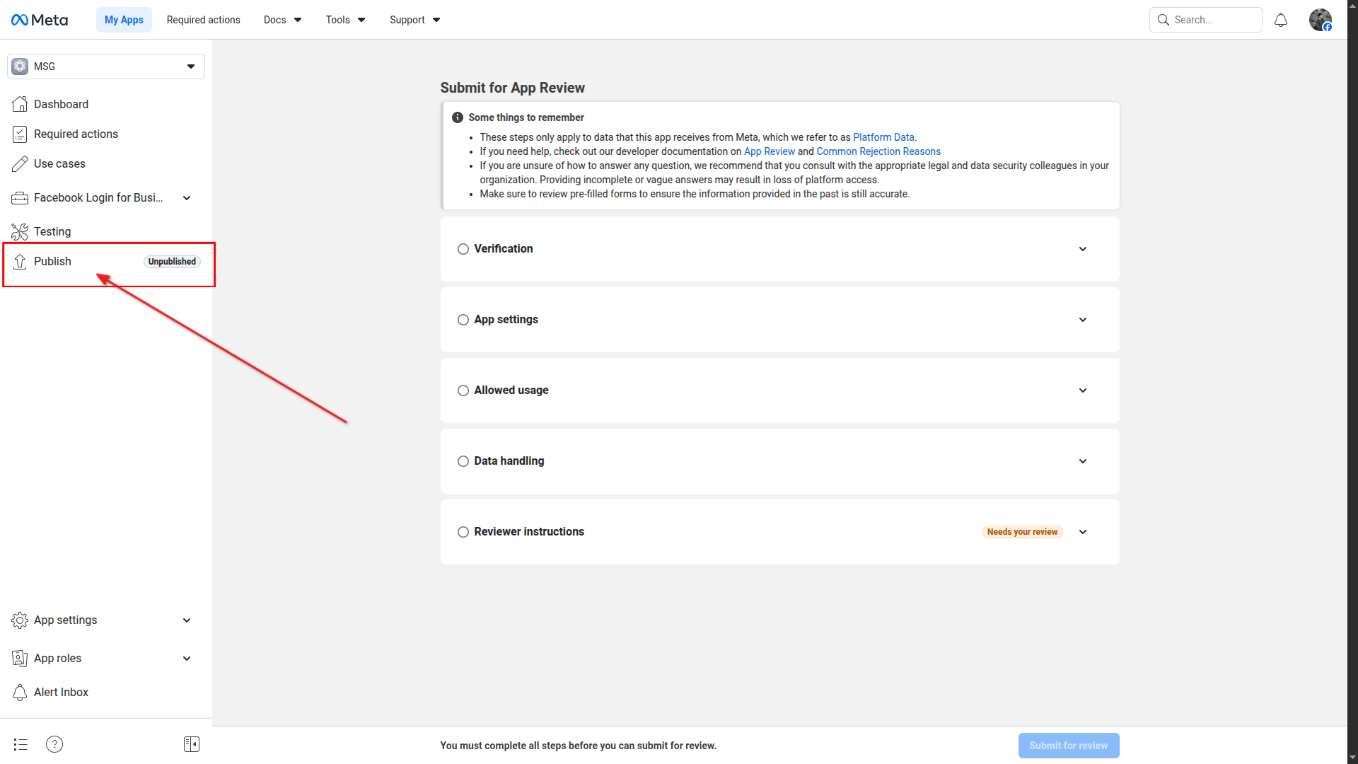Click Request permission in Complete App Review section