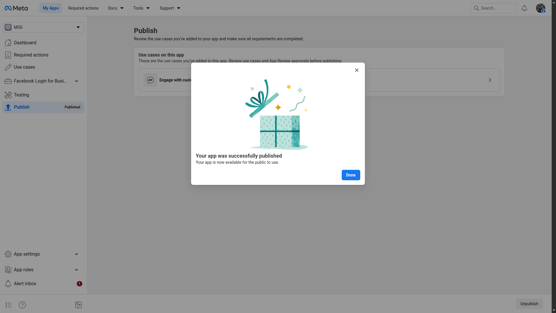 Click Publish to publish the app