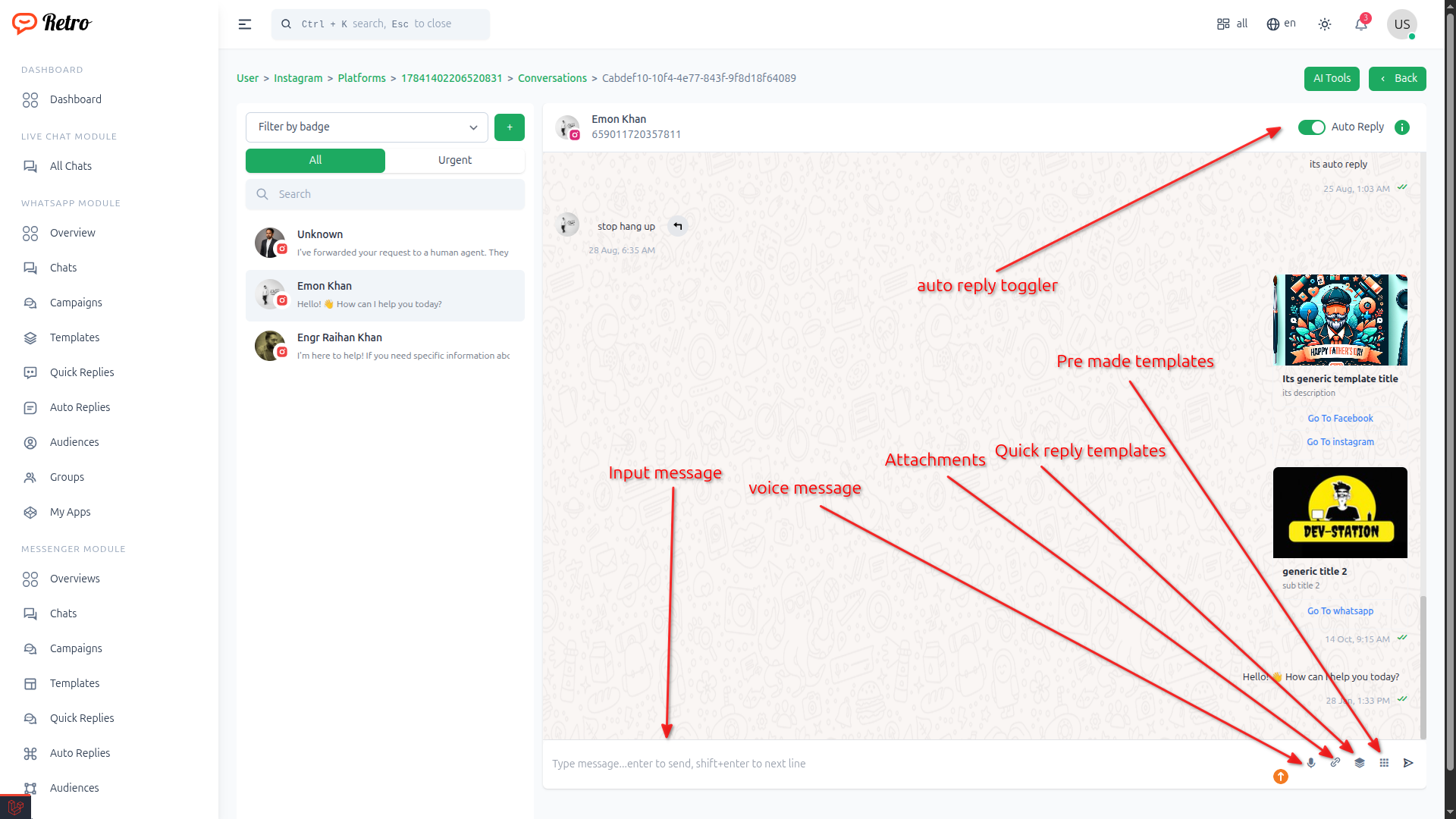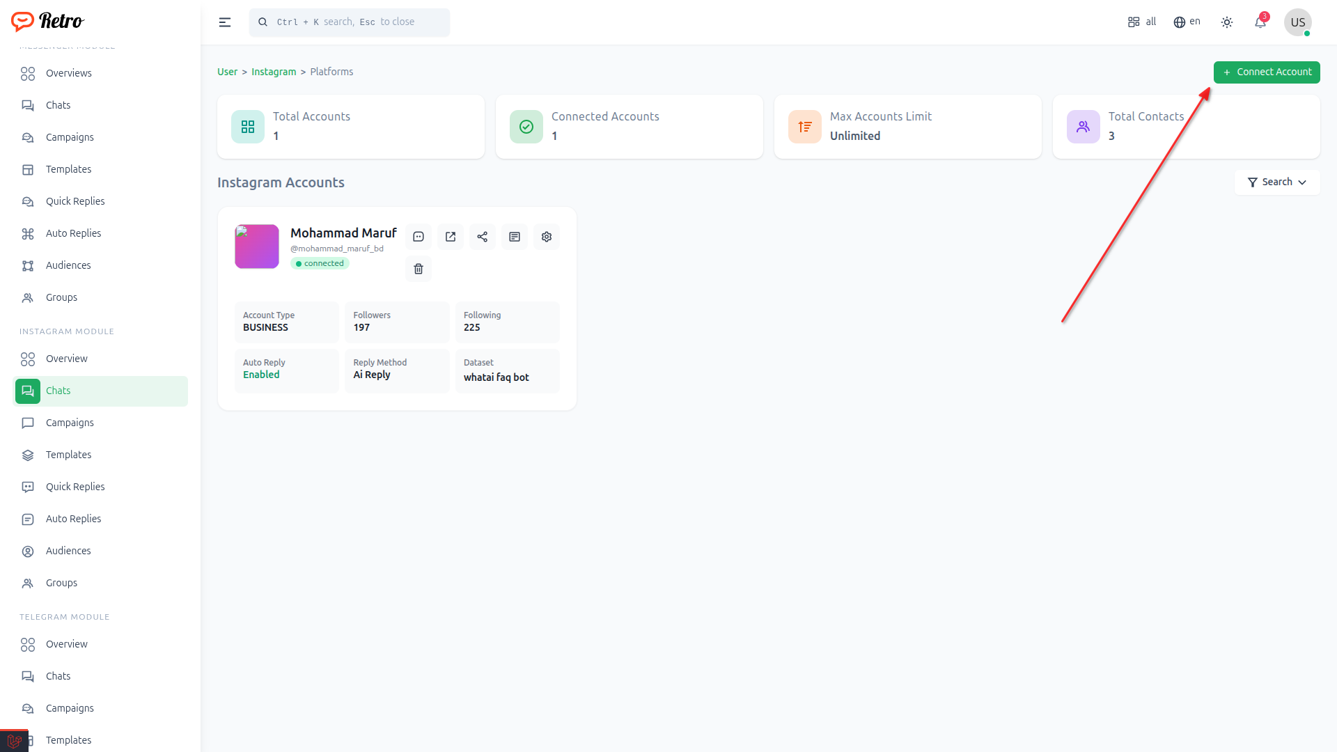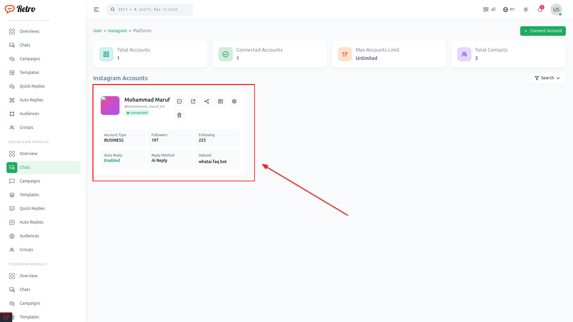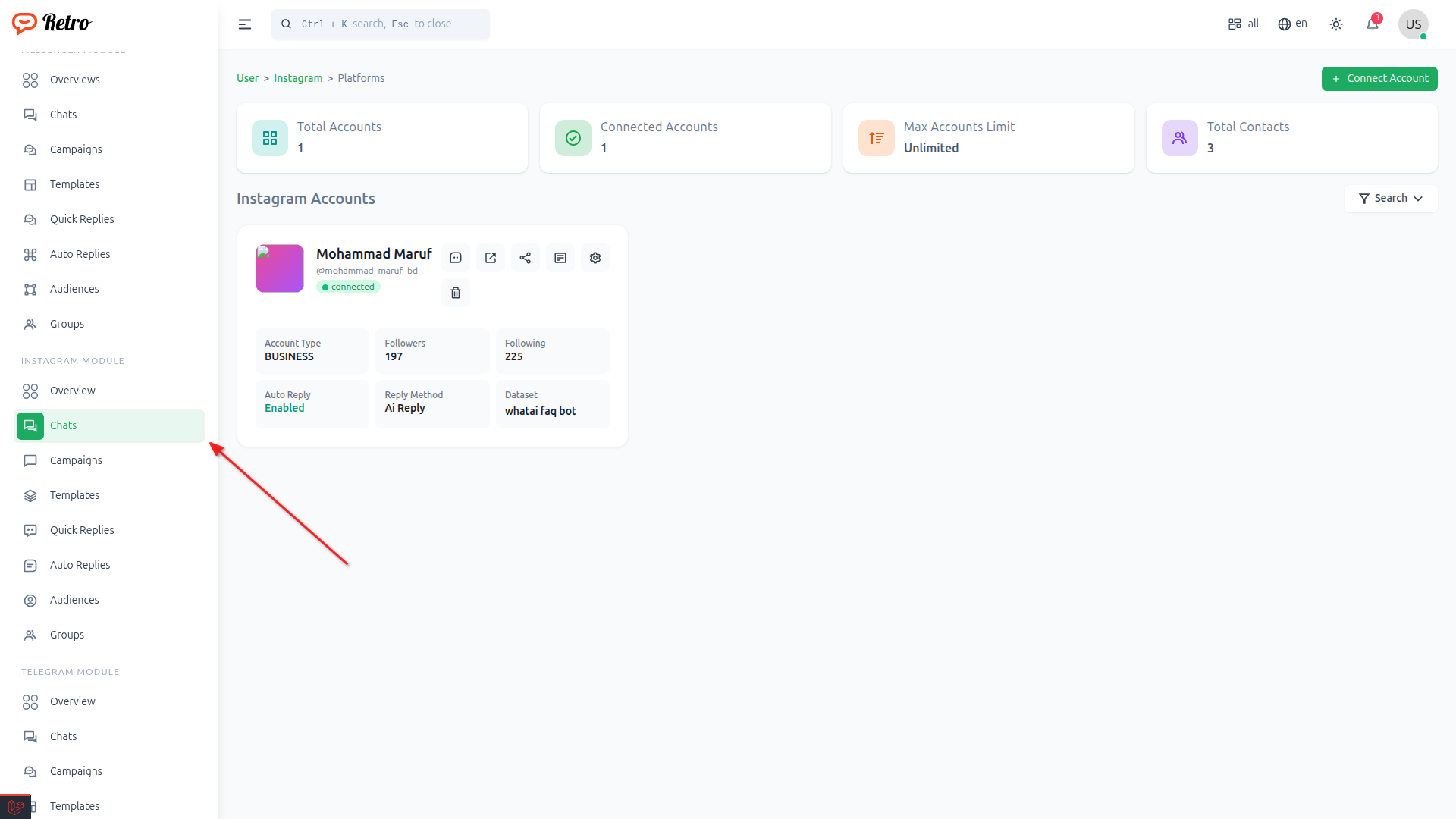 Or click to Chat from instagram Module option from sidebar