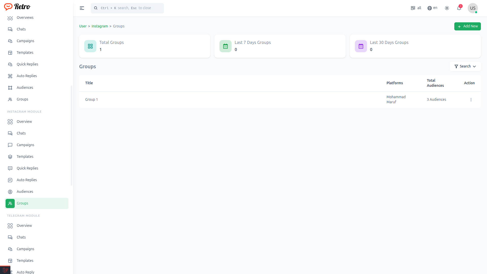 Or click to Groups from instagram Module option from sidebar